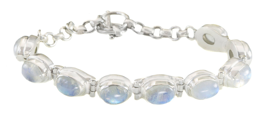 Moonstone Bracelet Bezel Set Toggle Clasp Smooth Rainbow Sterling Silver 7 8 Inches Natural Rainbow Blue Flash Smooth Adjustable