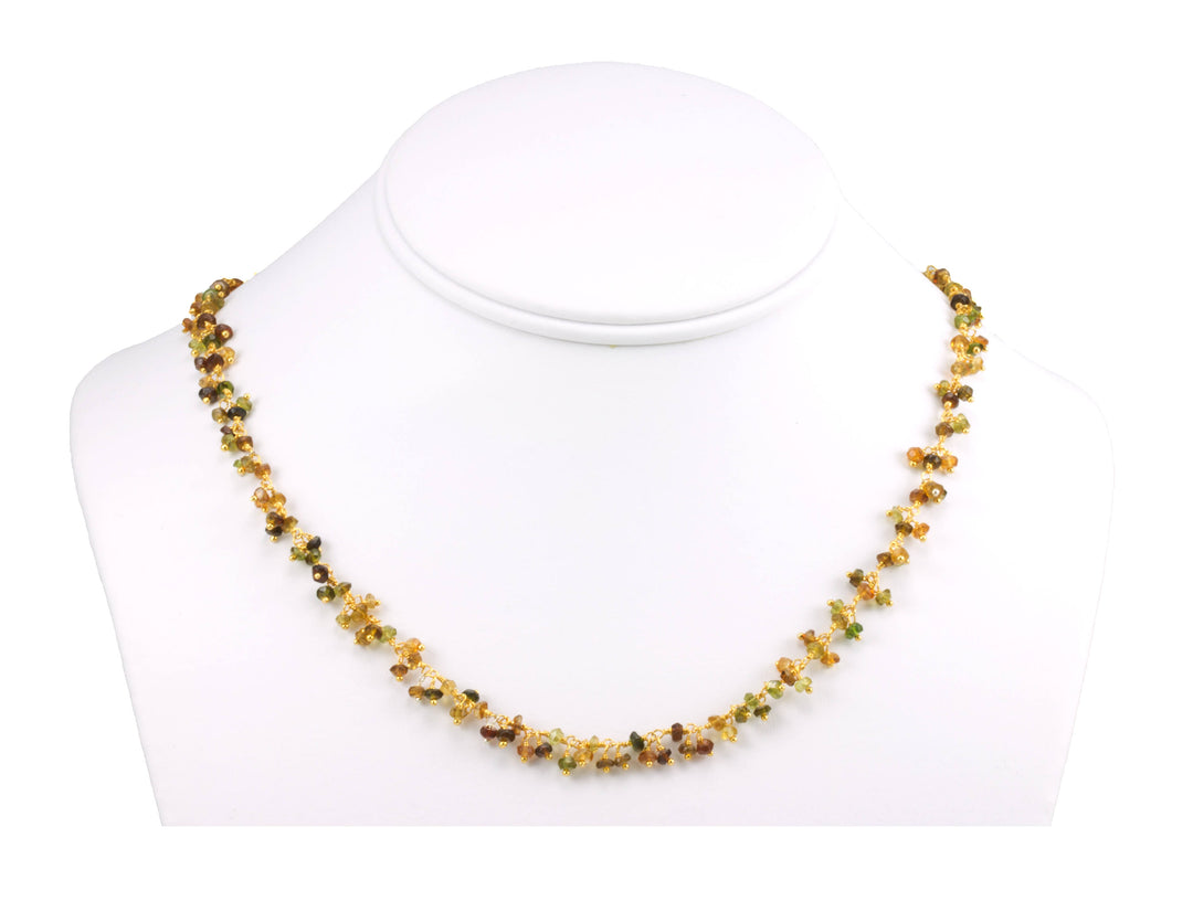 Tourmaline Necklace Brown Amber Green Faceted Cluster Chain Link Beaded 14k gold fill 18 19 Inches Beaded Rondelle Clusters