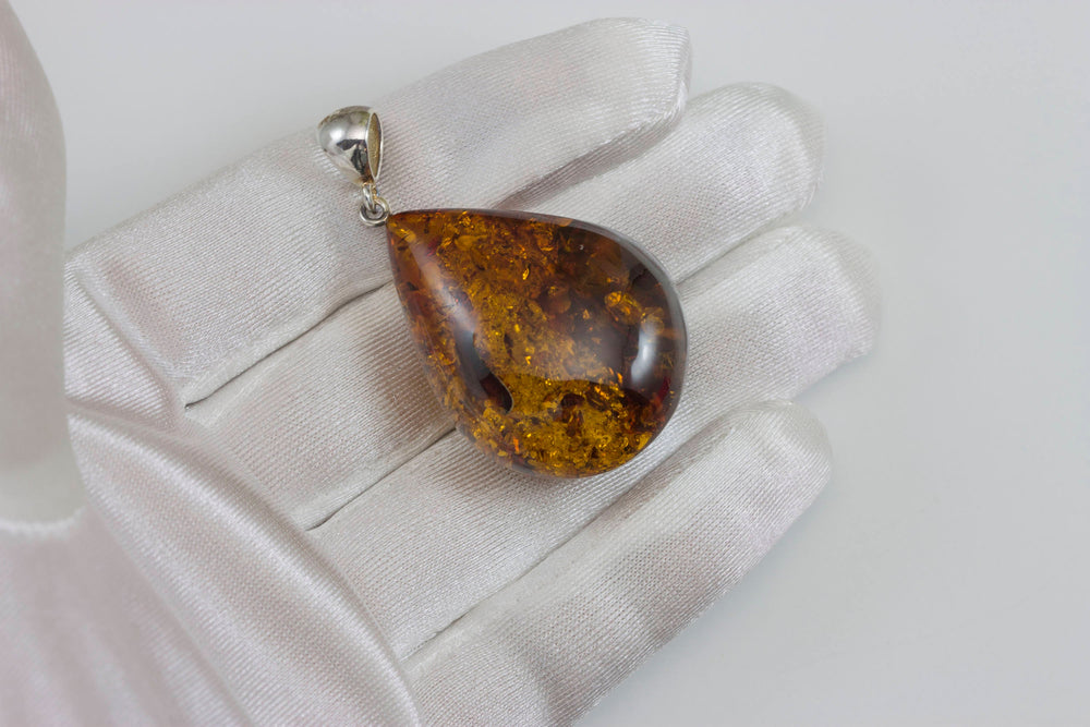 Honey Amber Pendant Baltic Natural Large Puffed Teardrop Shape Sterling Silver Bail Spyglass Designs Unique Cut Long Classic Simple