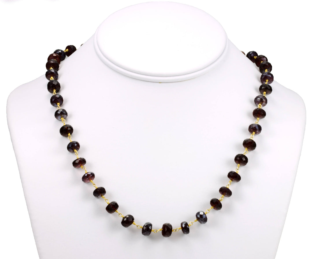 Garnet Necklace Faceted Chain Link Beaded Necklace 18 19 24 Inch Red Garnet Rondelles Mystic Finish Deep Red Color 7mm 14k Gold Plate Fill