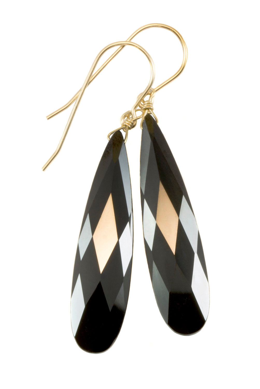 Black Sim Diamond Cubic Zirconia Earrings Pear Faceted Teardrop Briolette AAA CZ Sterling Silver or 14k Solid Gold or Filled Dangle Drops