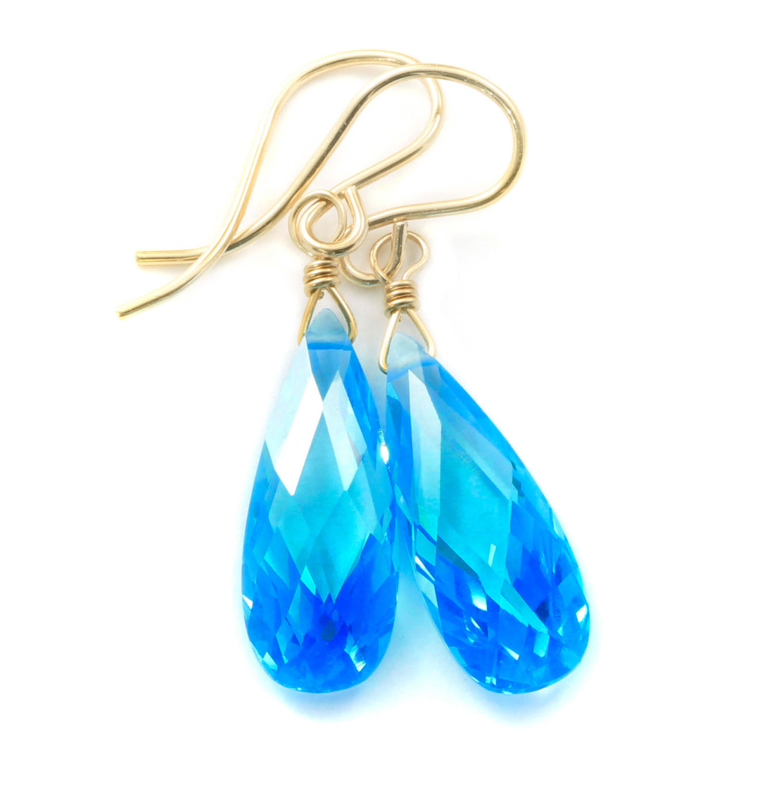 Topaz Swiss Blue Cubic Zirconia Earrings Long Teardrop AAA CZ Sterling Silver or 14k Solid Gold or Filled Faceted Long Simple Drop Spyglass