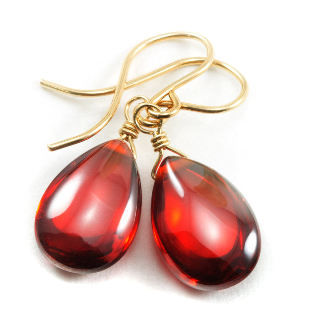 Garnet Red Cubic Zirconia Earrings Teardrop AAA CZ Smooth Sterling Silver or 14k Solid Gold or Filled Pear Simple Dainty Daily Wear Rich Red