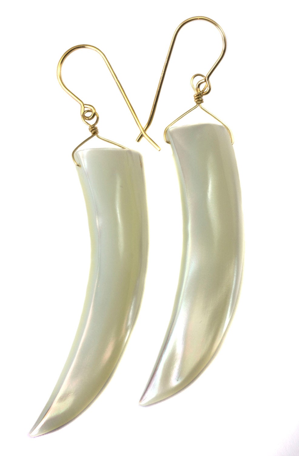 Mother of Pearl Earrings White Shell 14k Gold or Filled or Sterling Silver Natural Curved Shell Long 2 1/2 Inch Drops Large Simple Drops MOP