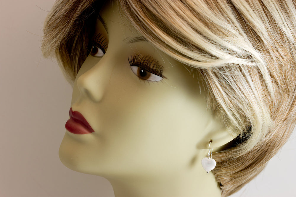Mother of Pearl Earrings White Shell Heart Shaped Teardrop Natural 14k Solid Gold or Filled or Sterling Silver High Luster Simple Drops MOP