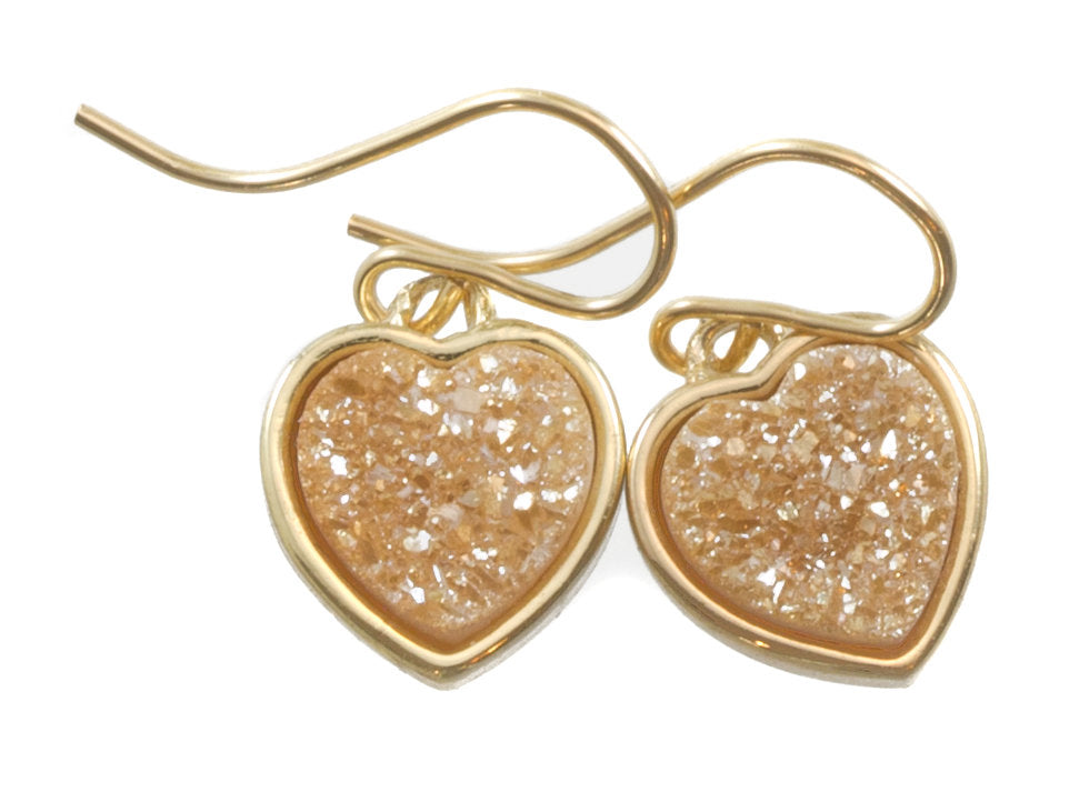Baby Geode Earrings Tabasco White and Peach Druzy Heart 14k Gold Filled or 14k Solid Gold Drusy AAA Natural Fine Small Drusy Geodes Drops