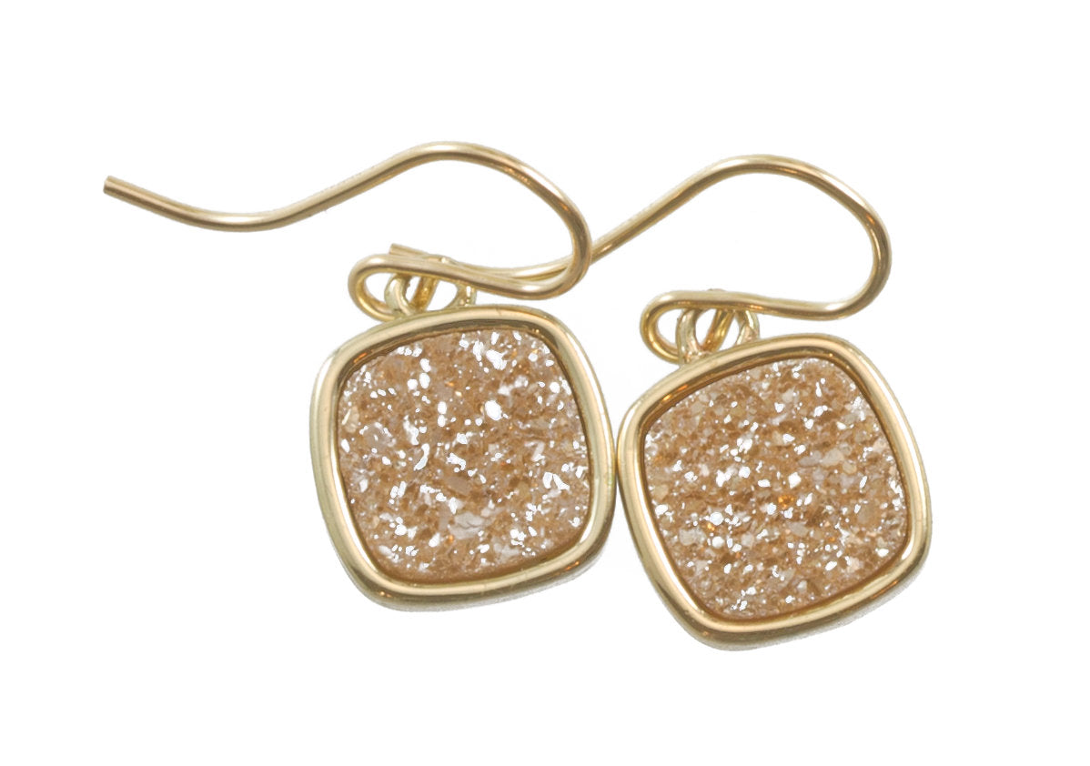 Silvery Druzy Earrings Teardrop 14k Solid Gold or Filled French Ear Wires Bezel Simple Drops sparkly drusy quartz Square Cut Dainty Bright