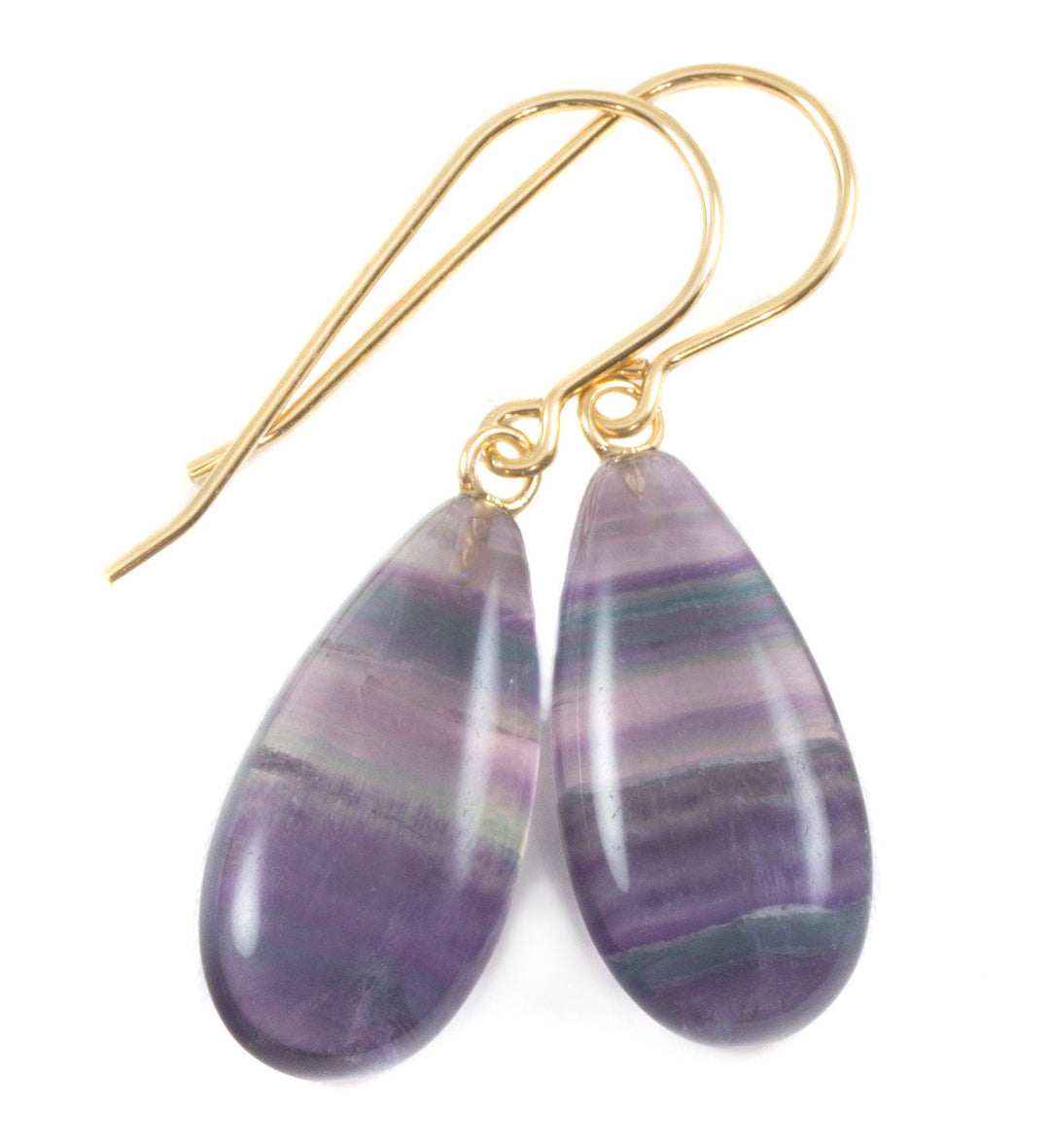 Fluorite Earrings Sterling Silver or 14k solid gold or filled Purple Striped Smooth Teardrop Flourite Spyglass Designs Simple Dainty Drops