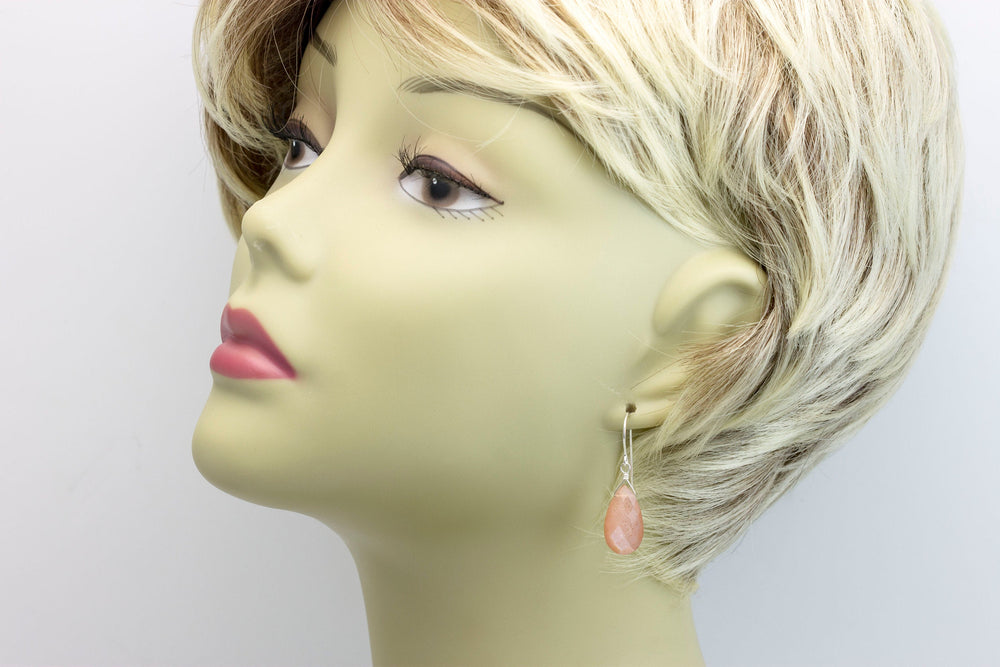 Moonstone Earrings Sterling Silver or 14k solid Gold or Filled Smooth Pear Teardrop Natural with Mystic Finish Pink Peach Shimmery Drops