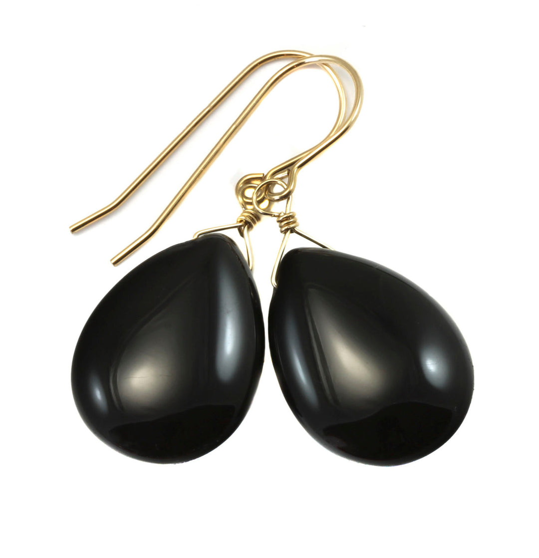 Black Onyx Earrings Sterling Silver or 14k Solid Yellow Gold or Filled Faceted Large Teardrop Dangle Simple Classic Large Drop