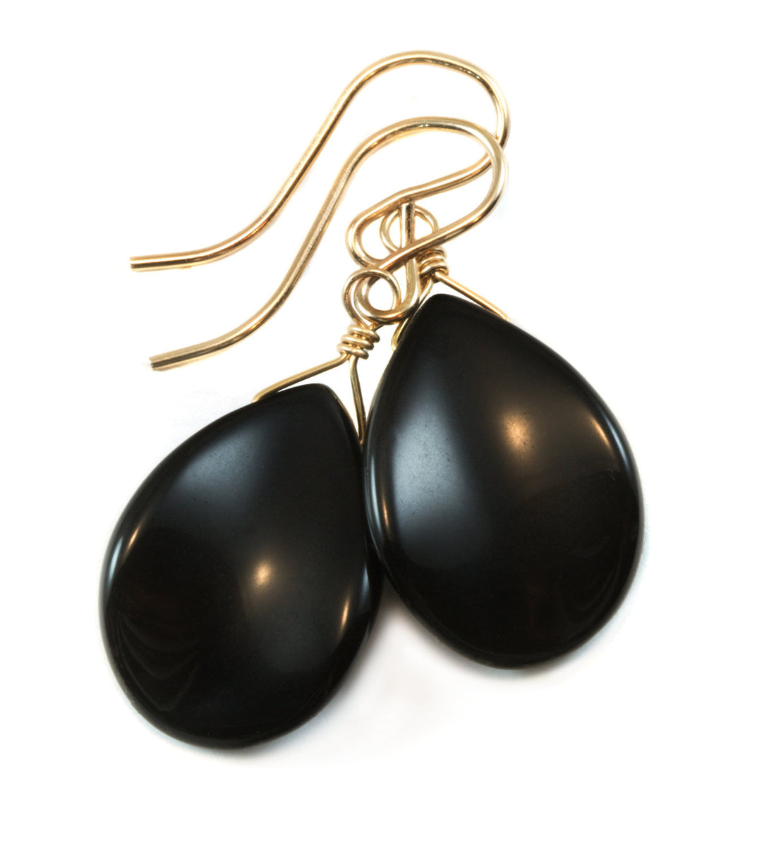 Black Onyx Earrings Sterling Silver or 14k Solid Gold or Filled Smooth Curved Teardrop Dangle Simple Design Special Cut Petal Shaped Drops