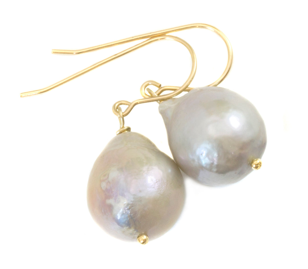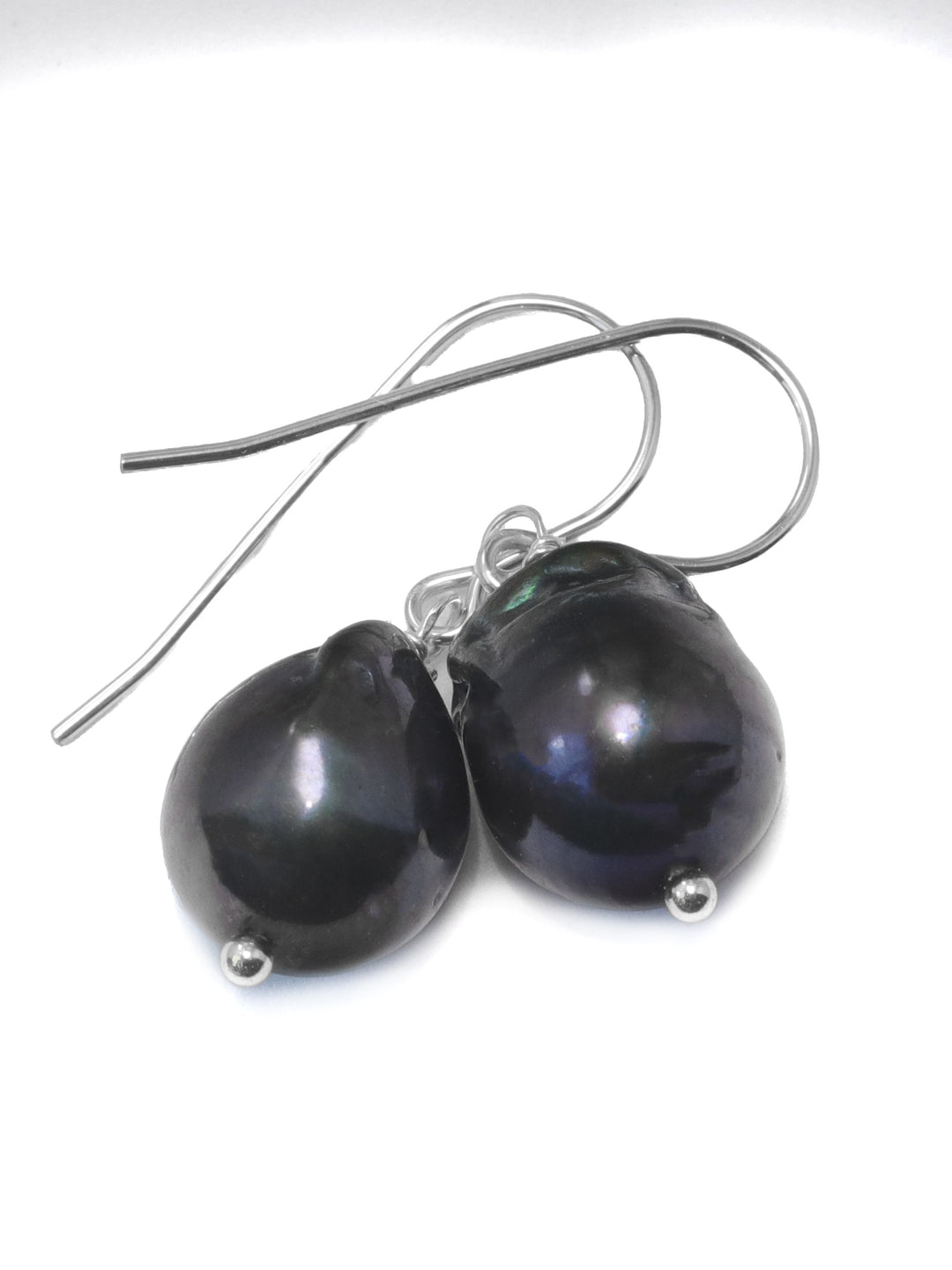 Baroque Pearl Earrings Black Peacock Large Freshwater Cultured Pearls 14k Solid Gold or Filled or Sterling Silver Natural Classic Drops