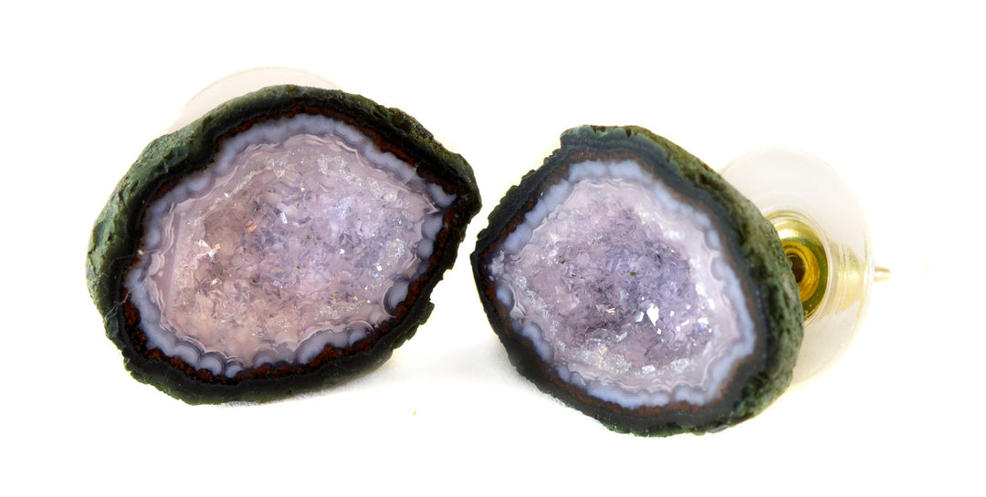 Baby Geode Earrings Tabasco Rare Pink Druzy Post Studs 14k Gold Filled Small Natural Drusy Quartz Halved Geodes Paired AAA