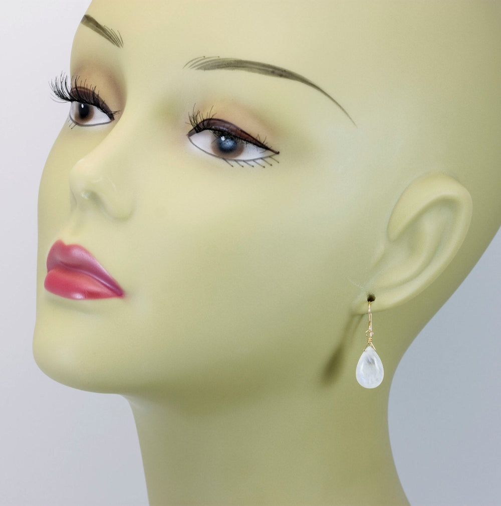Gray Moonstone Earrings 14k Solid Gold or Yellow or Rose Filled or Sterling Silver Faceted Wire Wrapped Grey Teardrop Briolette Drops
