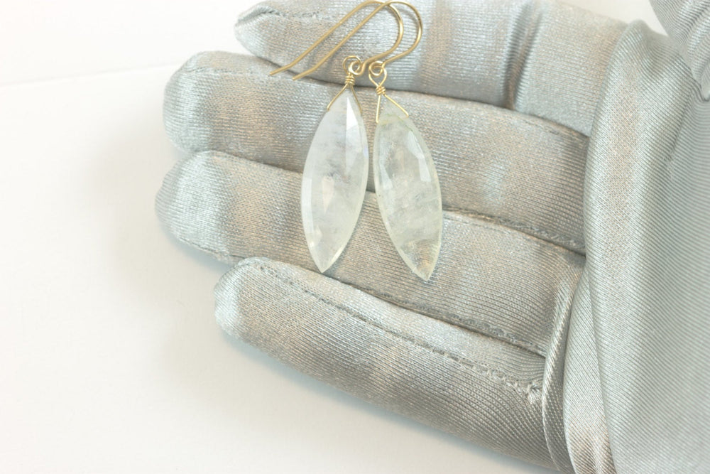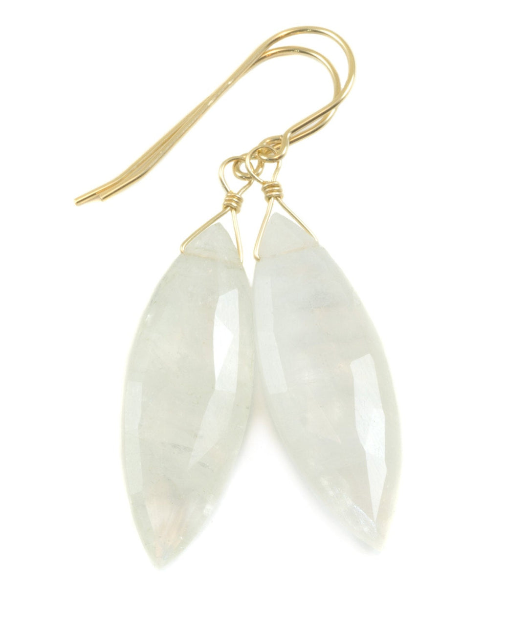 Rainbow Blue Moonstone Earrings 14k Gold Filled Faceted Large Marquise Briolette Teardrop Spyglass Designs