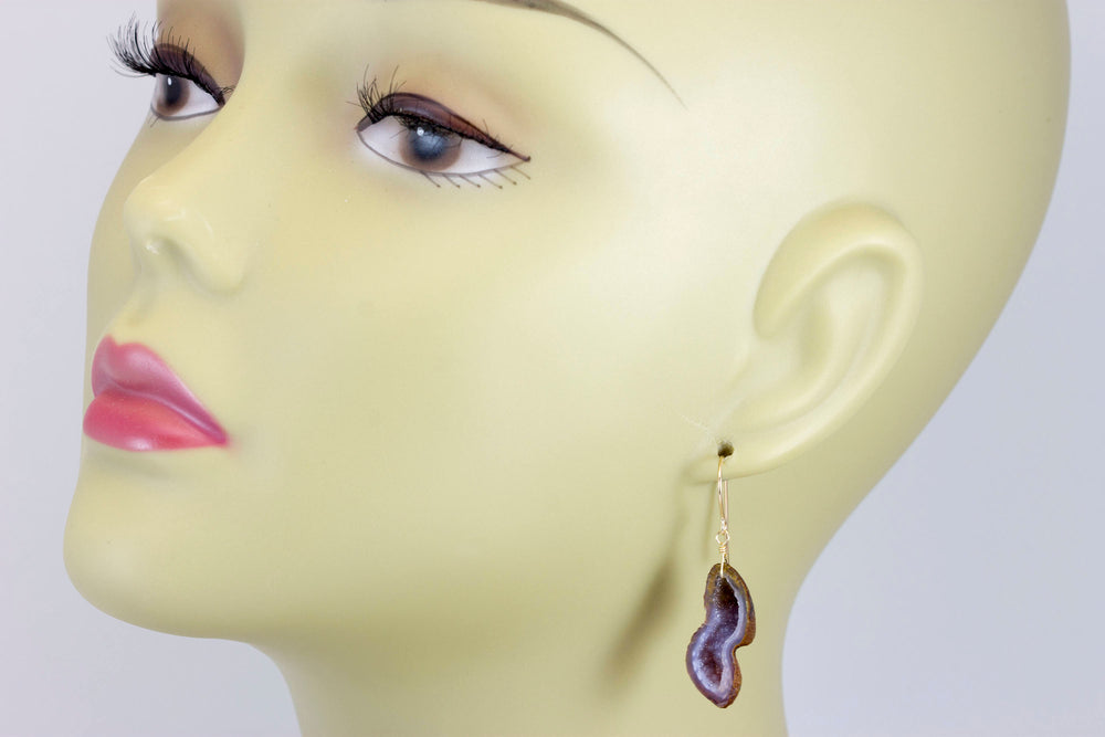 Baby Geode Earrings Tabasco White Gray Long Small Druzy 14k Gold Filled Polished Drusy Paired AAA Natural Fine Drusy Geodes Earthy Drops