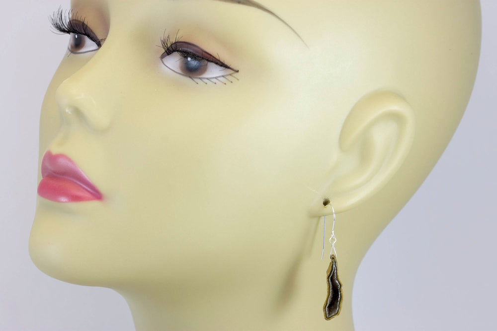 Baby Geode Earrings Tabasco Champagne Gray Druzy Oval Sterling Silver Polished Drusy Paired AAA Natural Fine Small Drusy Geodes Drops