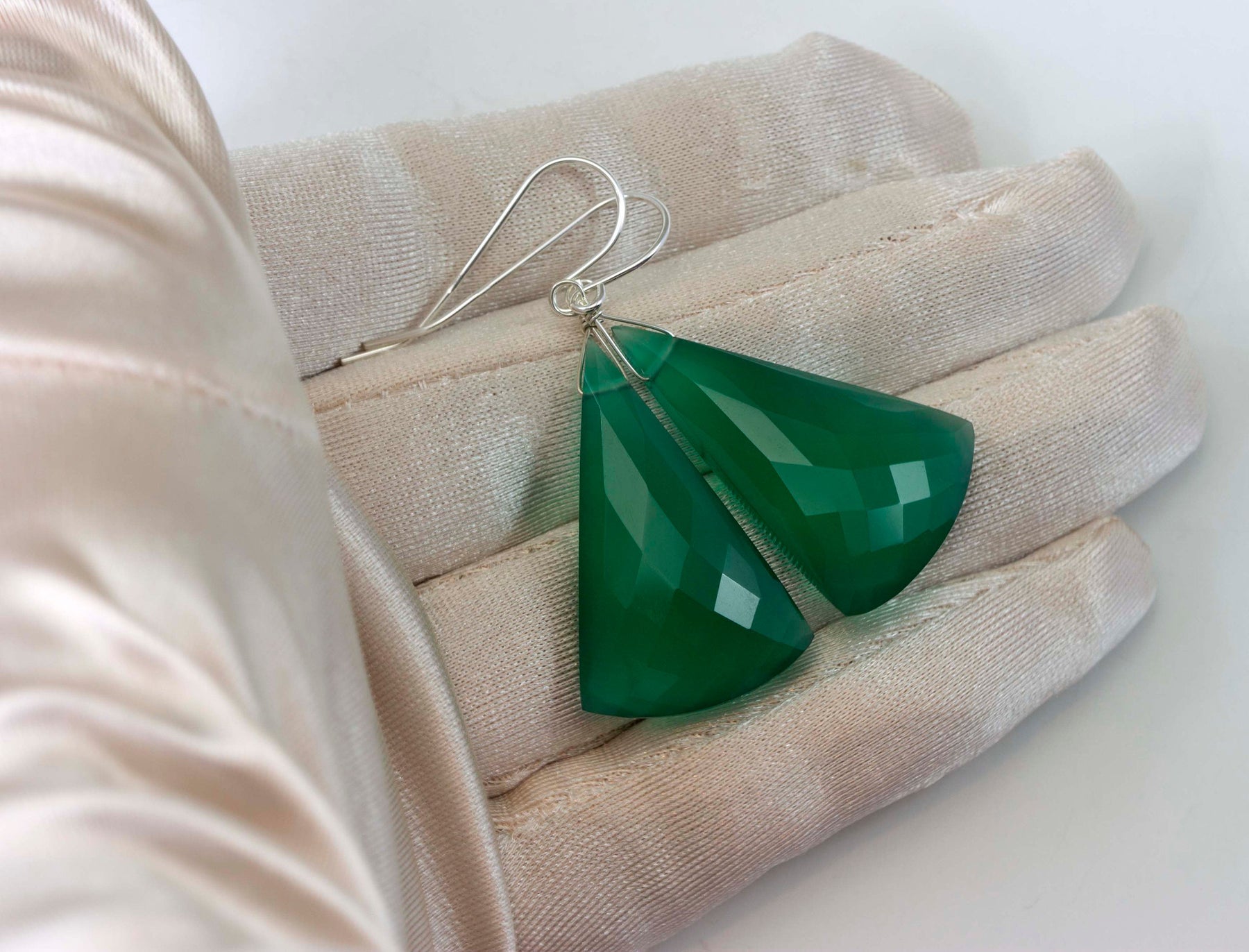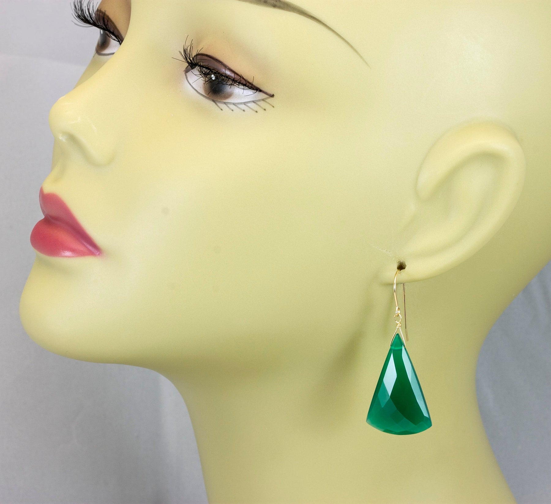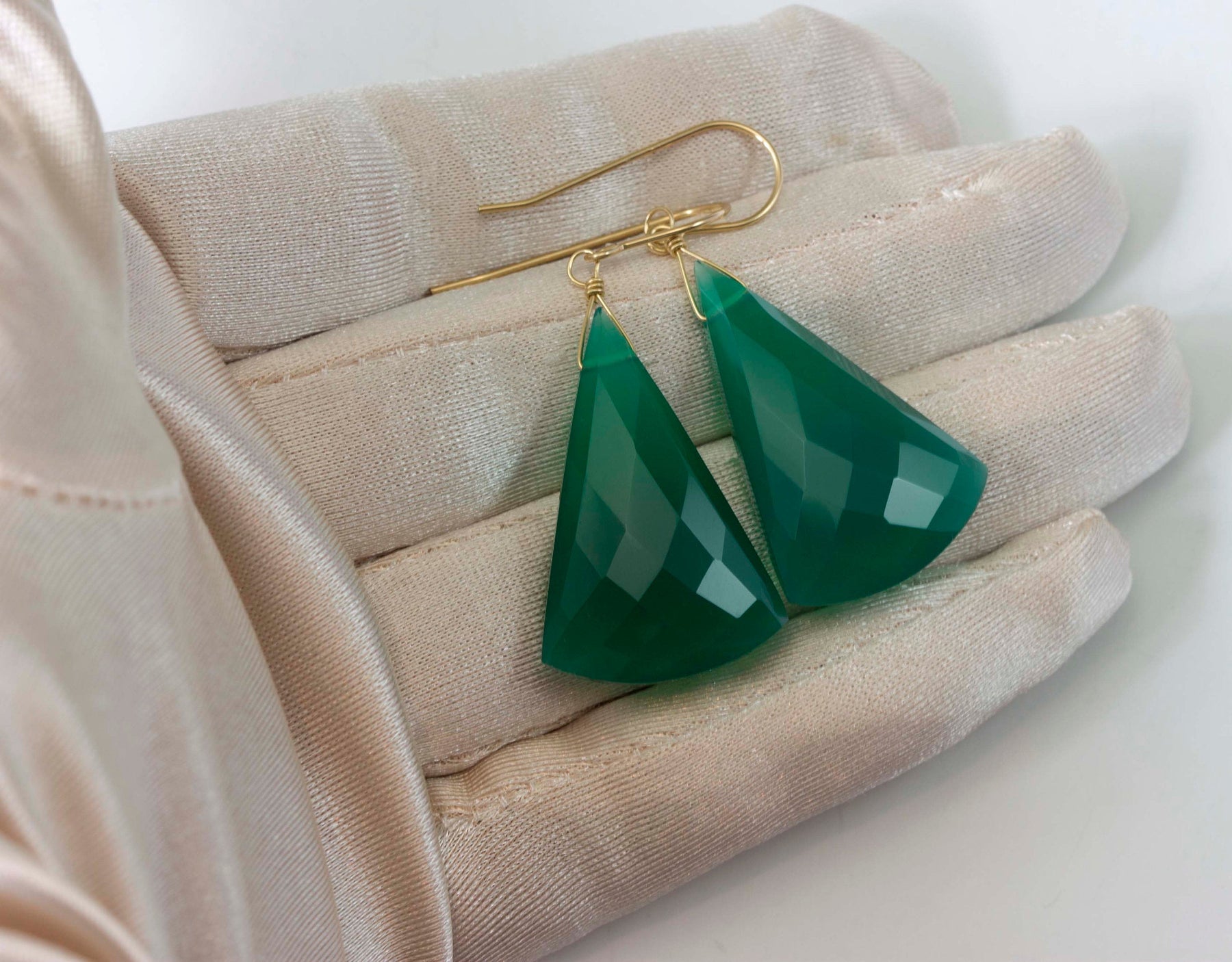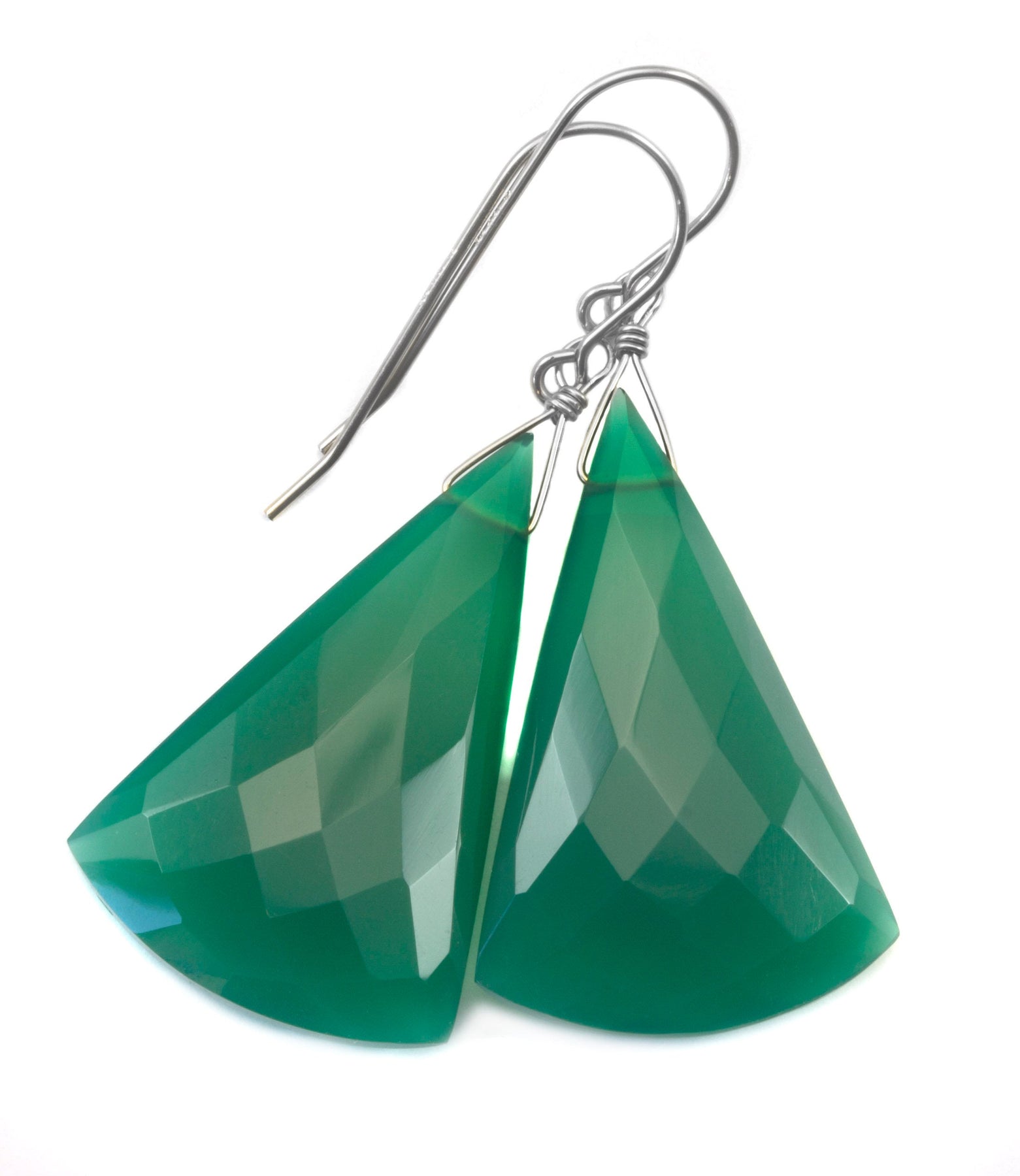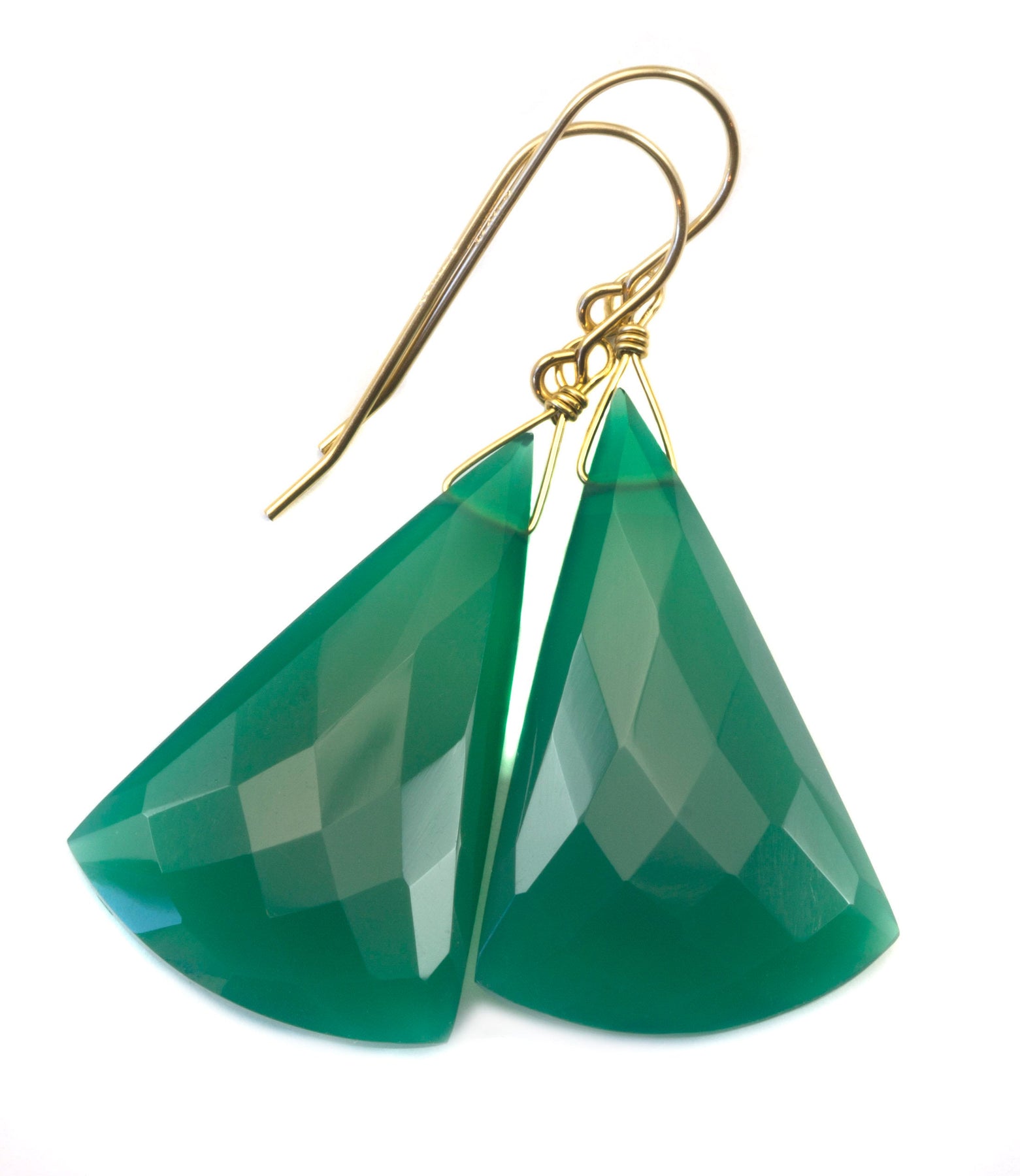 Green Onyx Earrings Faceted Large Triangle 2 Inches Teardrop Sterling Silver or 14k solid yellow gold or 14k Gold Fill Emerald Green Drops 2