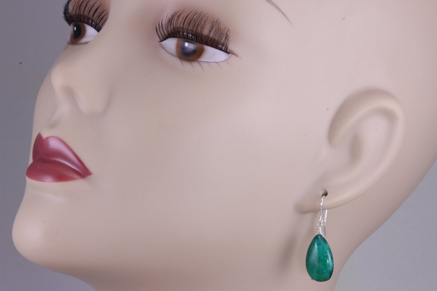 Emerald Green Earrings Smooth Simulated Emerald Pear Teardrop Drop Dangle Sterling Silver or 14k Solid Gold or Filled Simple Basic Classic