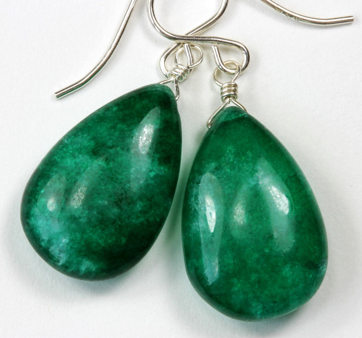 Green Quartzite Earrings Smooth Simulated Emerald Fat Teardrop Drop Sterling Silver or 14k Gold Filled Simple Classic Smart Design