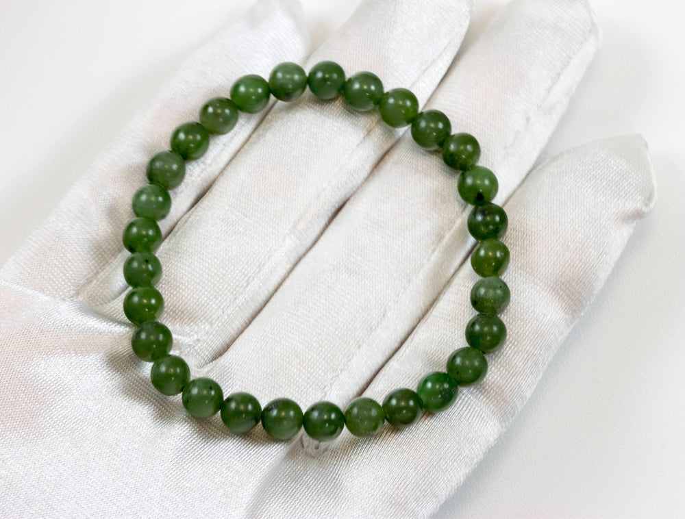 Green Nephrite Jade Bracelet Stretchy Style Smooth Round Stones 6 7 8 Inches Adjustable natural Polished Simple Everyday