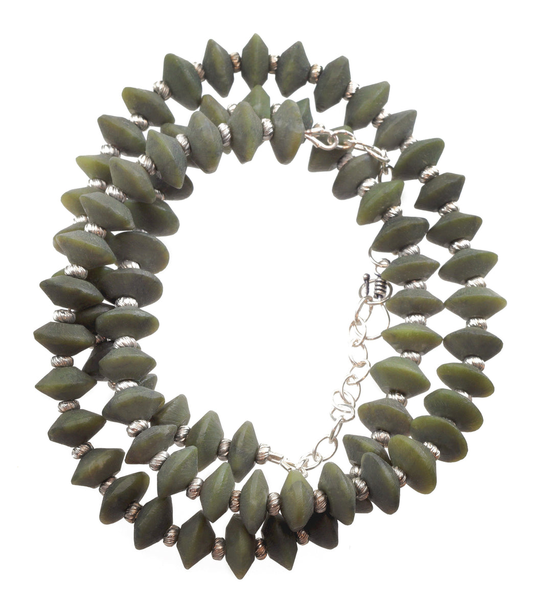 Jade Bracelet Green Nephrite Adjustable 7 7.5 Inches Inch Simple Everyday Stretch Easy Wear Natural Stones Triangle and Round Shaped