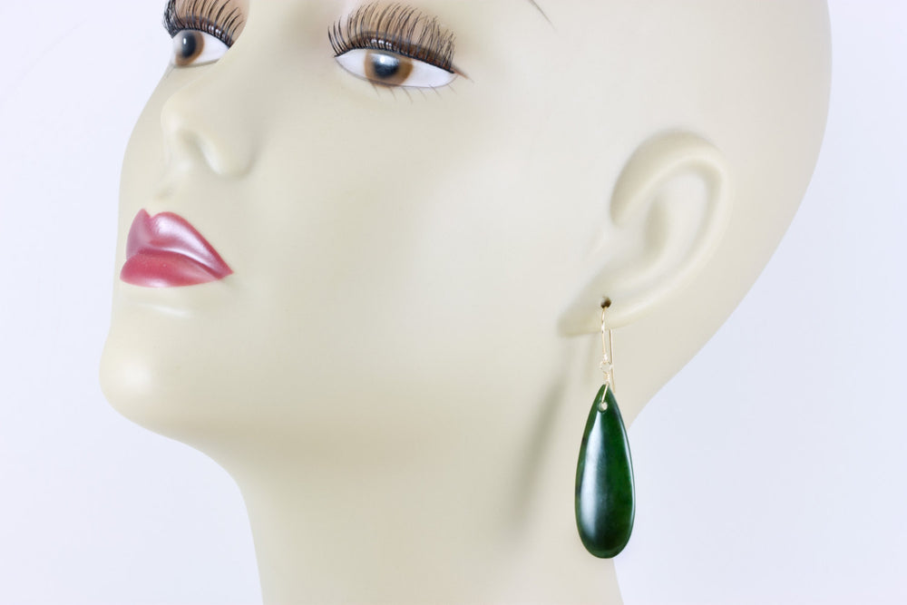 Jade Earrings Natural Green Nephrite Smooth Long Teardrop Drops 14k Solid Gold or Filled or Sterling Silver Earthy Rich Classic Simple Drops