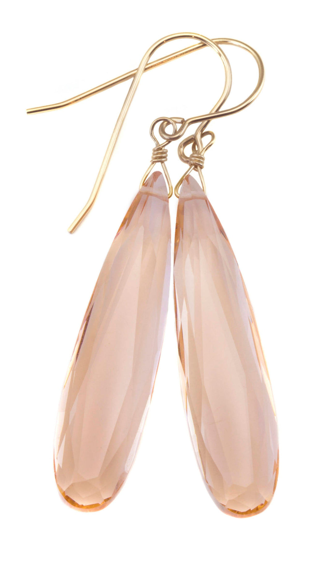 Peachy Pink Simulated Morganite Earrings Faceted Large Long Dangle 14k Gold or Filled or Sterling Silver Classic Simple Clean 2 Inch Drops
