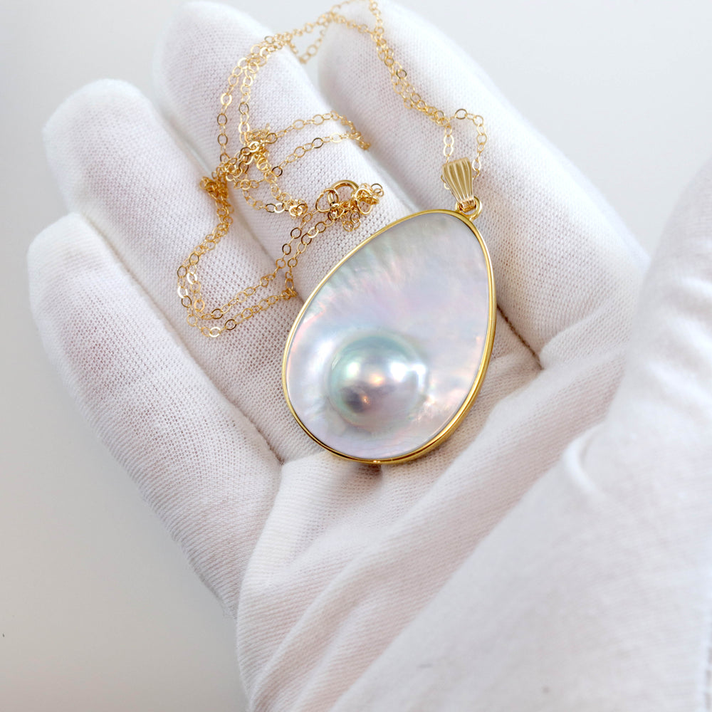 Blister Pearl Pendant Sterling Silver or 14k Gold Large 20" Chain Silvery Mother of Pearl Natural High Luster Organic Shape bezeled