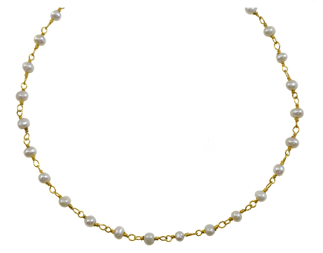 White Pearl Necklace Freshwater Cultured Pearls Spaced Link Beaded 24 Inches 14k Gold Filled Simple Chain Link 4mm pearls oval round