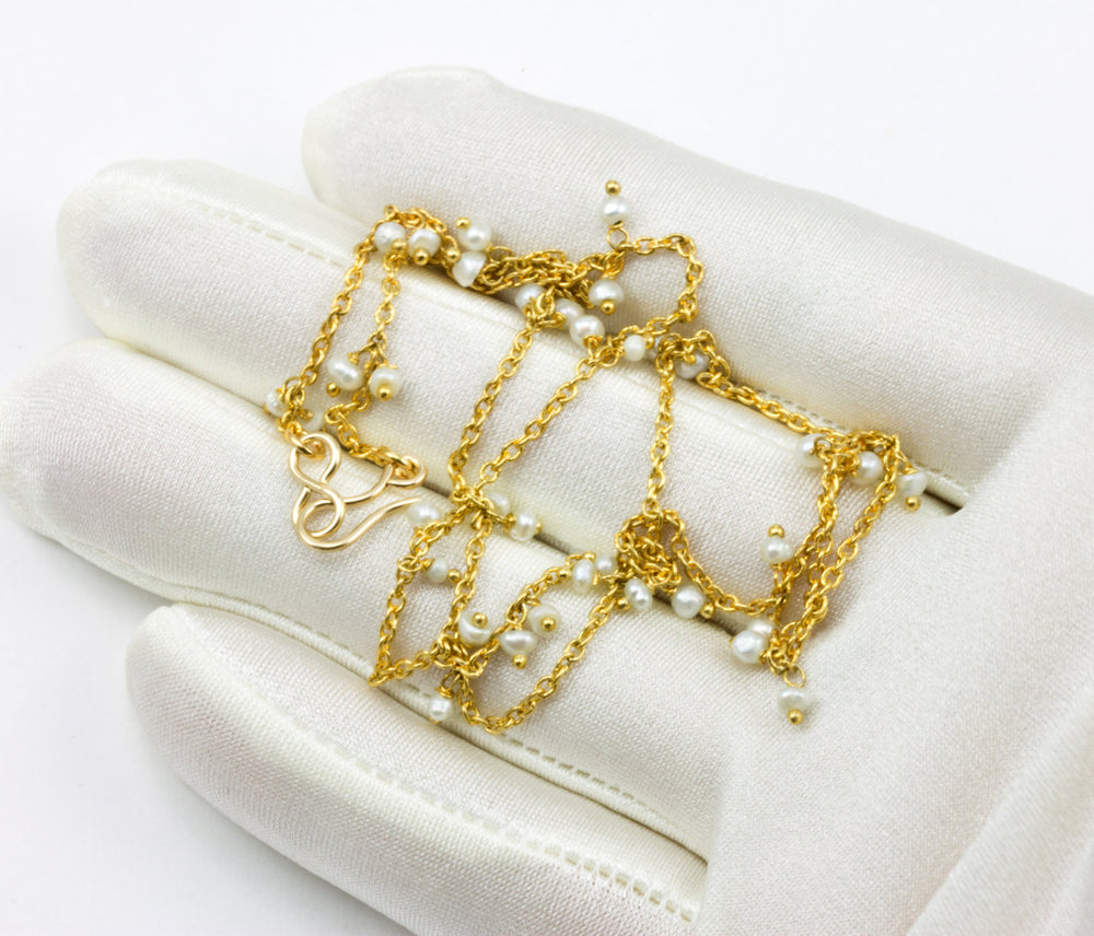 White Seed Pearl Necklace Sterling Silver or 14k Gold Fill Teeny Tiny 2mm Freshwater Cultured Pearls Chain Link 18 19 Inches Everyday Wear
