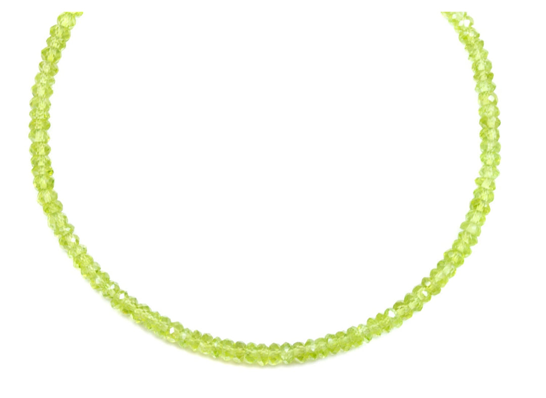 Green Peridot Necklace Natural Solid Strand 14k Gold Filled or Sterling Silver 18 19 Inch Soft Peridot Faceted Rondelles Beaded