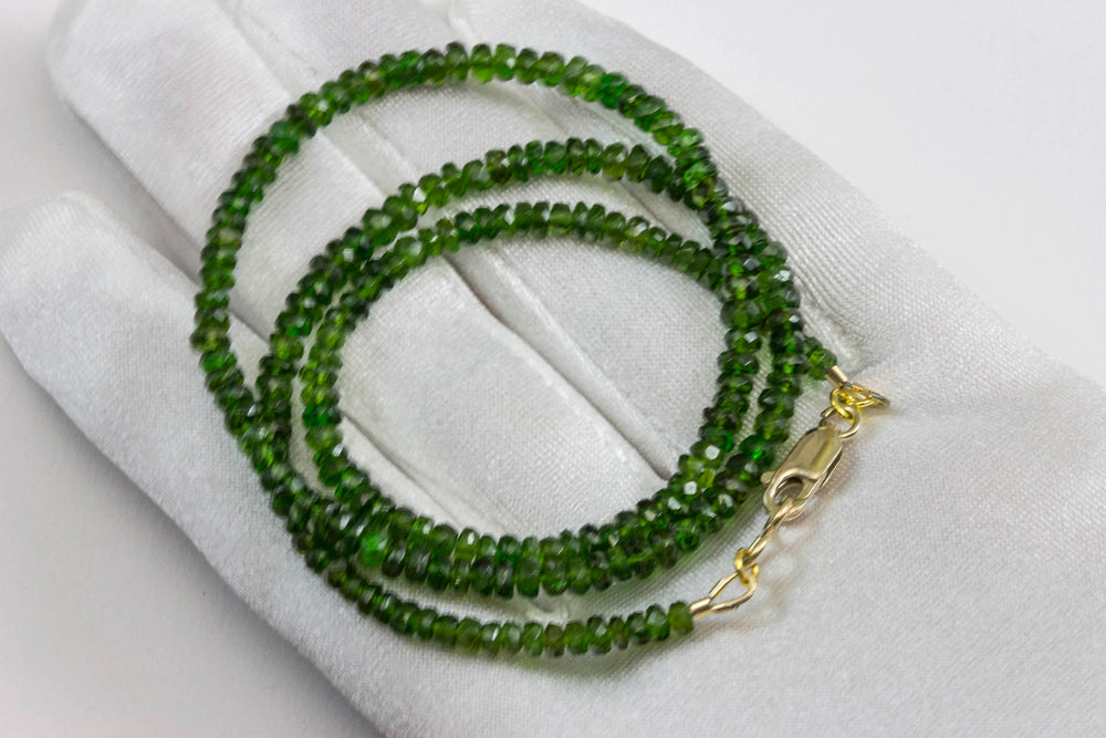 Green Chrome Diopside Necklace Natural Solid Strand 14k Gold Filled or Sterling Silver 18 19 Inch Faceted Beaded Dainty Simple