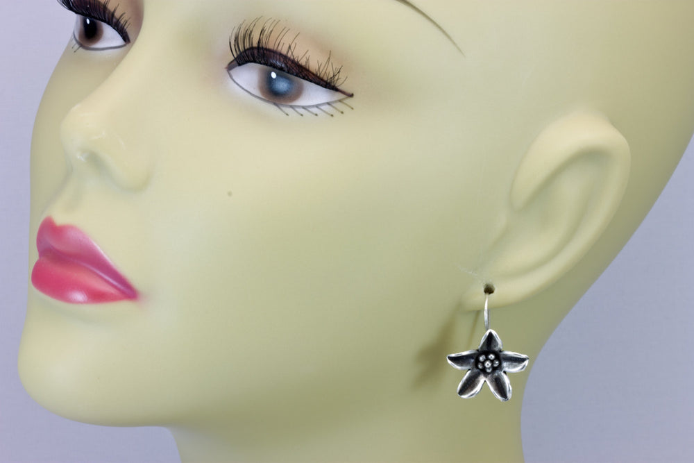 Lotus Flower Earrings Sterling Silver Hill Tribe Silver Oxidized Simple Earthy French Wires Spyglass Designs Handmade Daily Wear