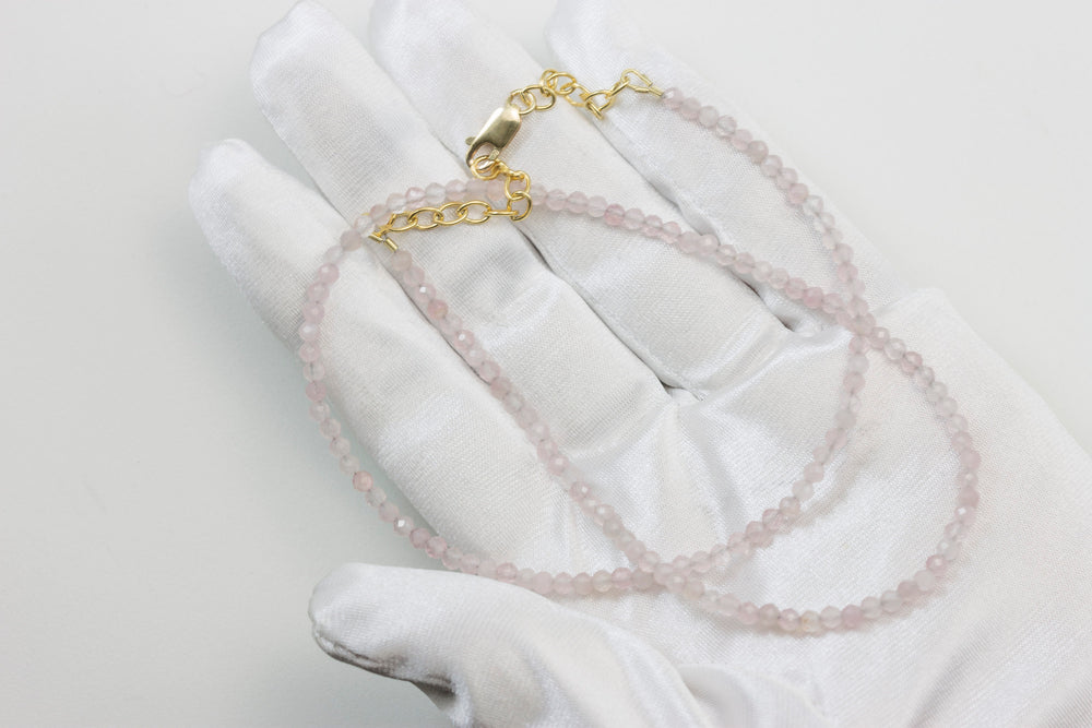 Rose Quartz Necklace Natural Pink Solid Strand Dainty Small Sterling Silver 14k Gold Filled Micro Faceted 19 20 Inches Simple