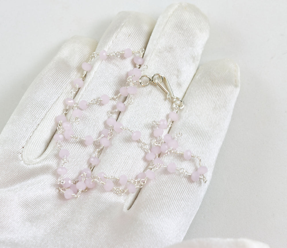 Rose Quartz Necklace Natural Pink Bead Chain Dainty Small Sterling Silver or 14k Gold Filled Micro Faceted 18 19 Inches Simple Spyglass