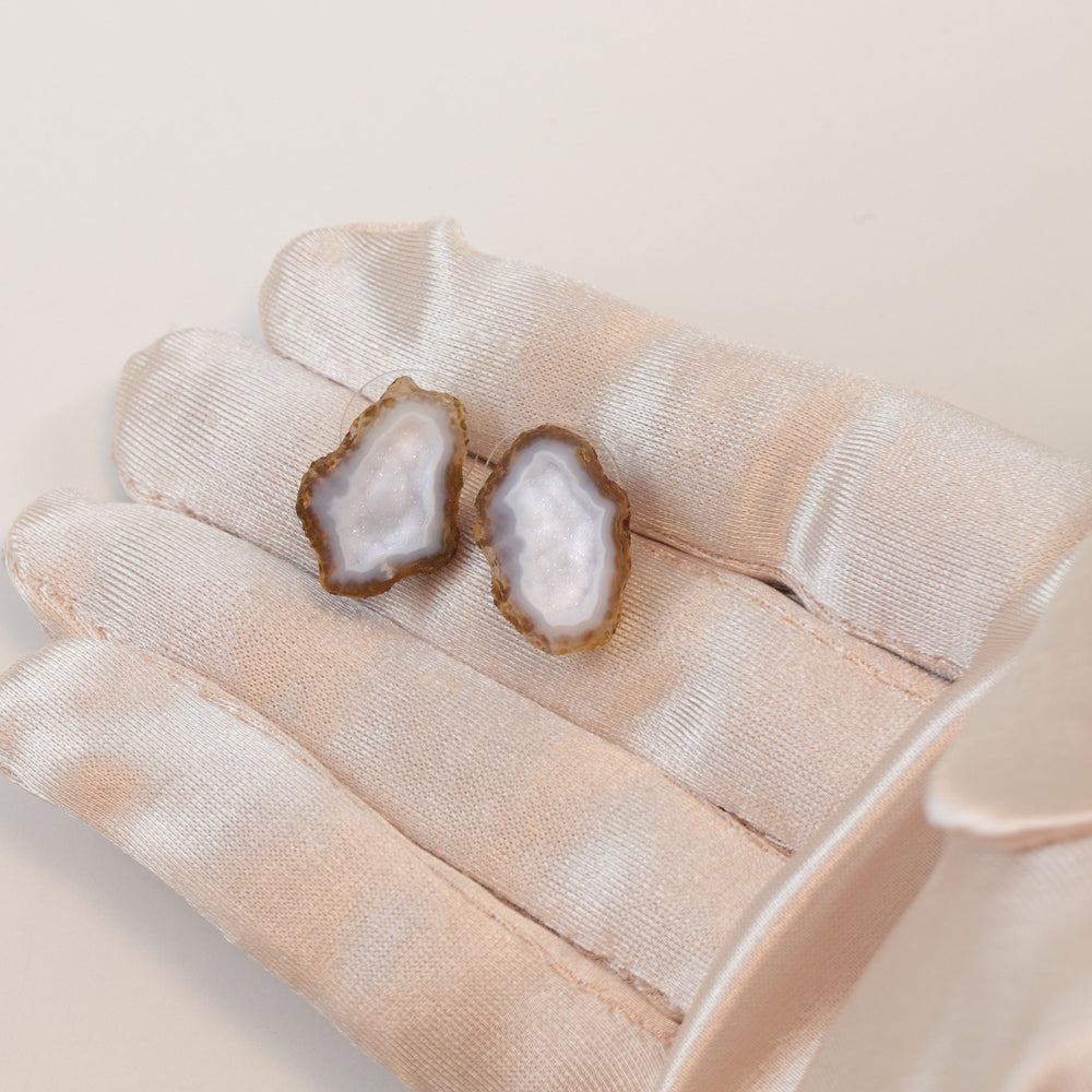 Baby Geode Earrings Tabasco Soft Gray Druzy Post Studs Sterling Silver Small Natural Drusy Quartz Halved Geodes Paired AAA Spyglass Designs