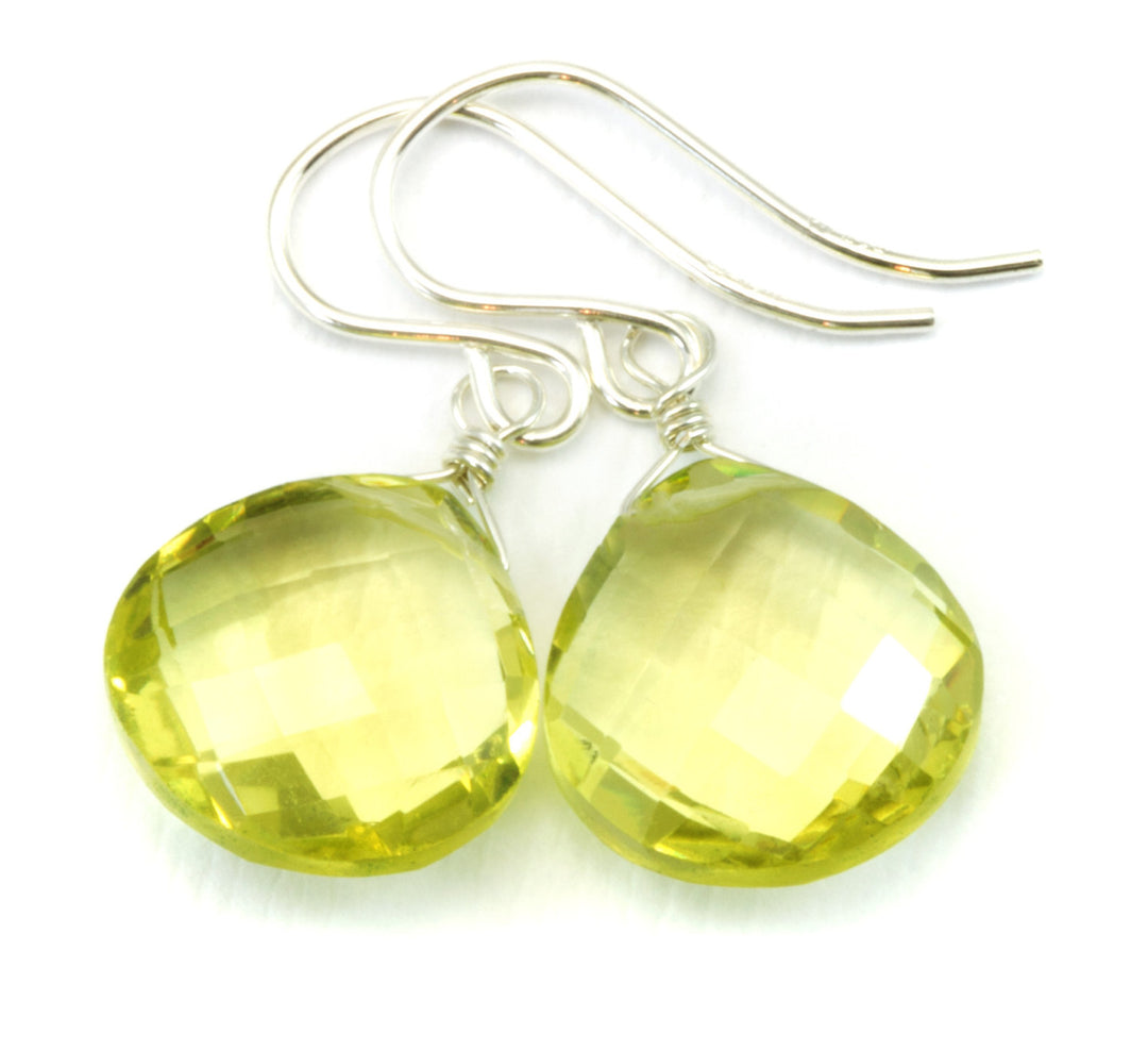 Lemon Yellow Quartz Earrings Sterling Silver or 14k Solid Gold or Yellow or Rose Filled Heart Teardrop AAA Natural Soft Color Classic Drops