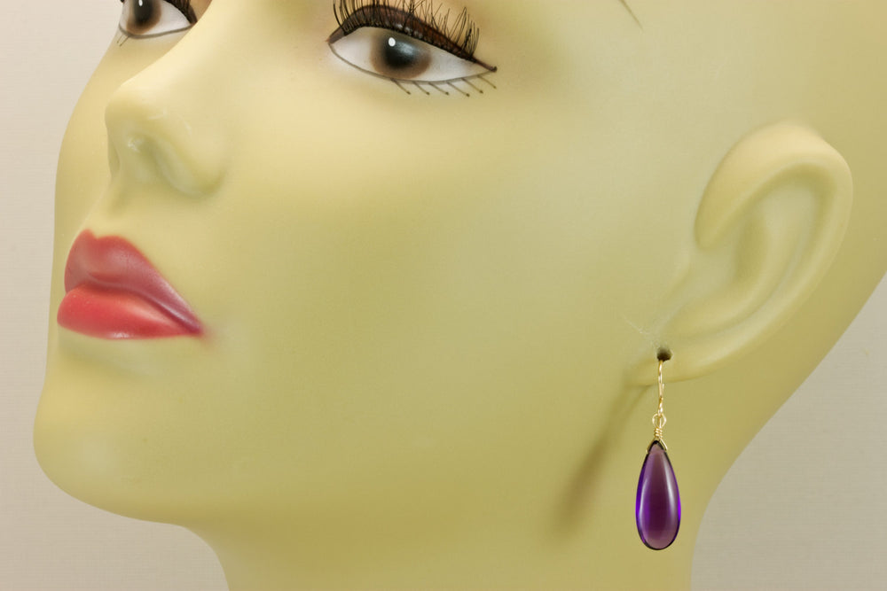 Purple Amethyst Simulated Quartz Earrings Smooth Teardrop 14k Solid Gold or Filled or Sterling Silver Simple Long Drops Daily Lightweight