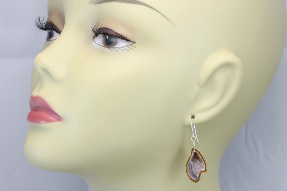Baby Geode Earrings Tabasco Unique Gray Druzy Oval Sterling Silver Polished Small Natural Drusy Quartz Halved Geodes Paired AAA Drops