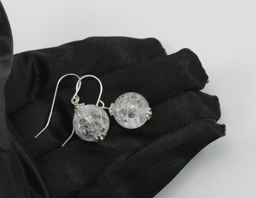 Crackle Clear Quartz Earrings Sterling Silver or 14k solid Gold or Filled Round Cut Faceted Natural Quartz Mosaic Round Beaded Accent Drops
