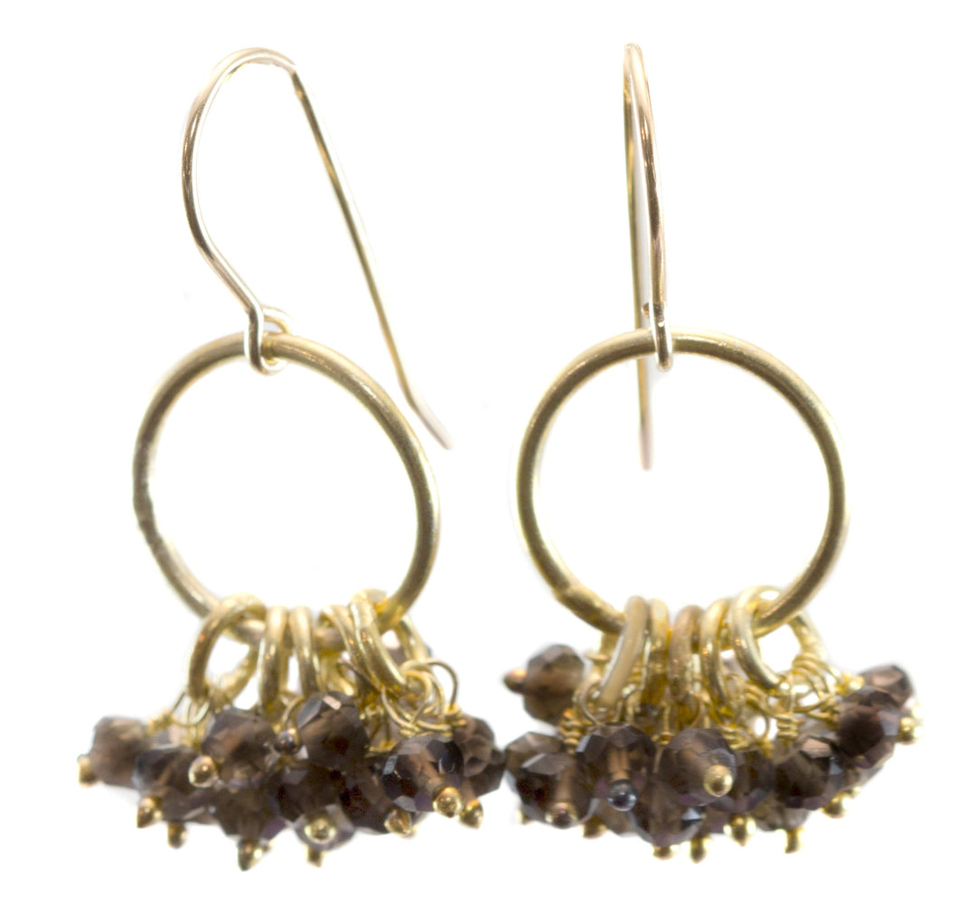 Smokey Quartz Earrings Natural Smoky Clusters Drops 14k solid gold or filled Faceted Multiple Stones Grouped Dangles Clustered Loops