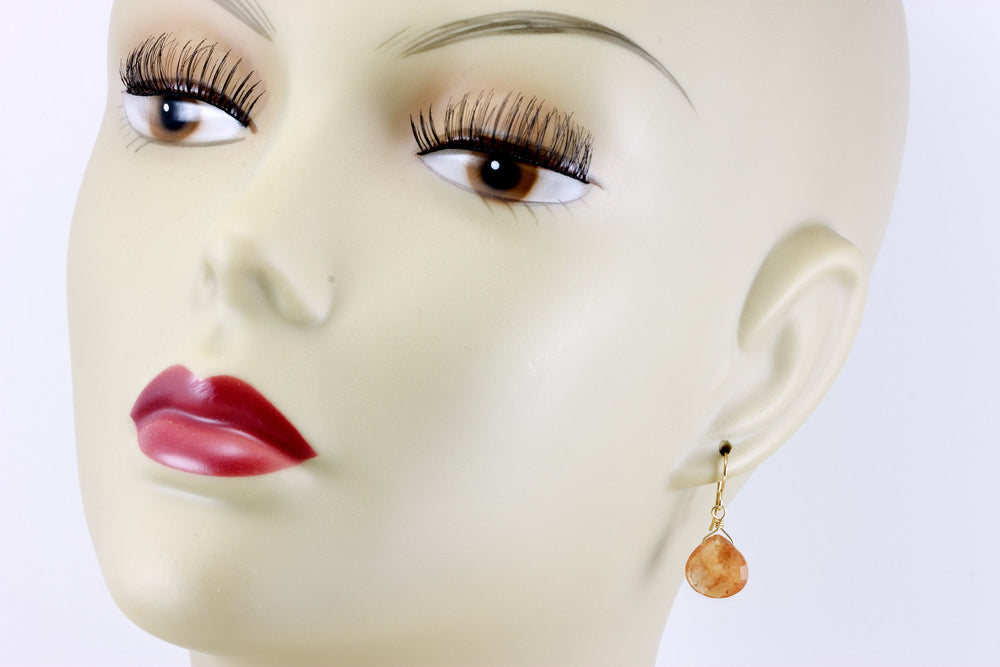 Cherry Quartz Earrings Heart Briolette Natural Peachy Pink Dangles 14k Solid Gold or Filled or Sterling Silver Faceted Simple Light Drops