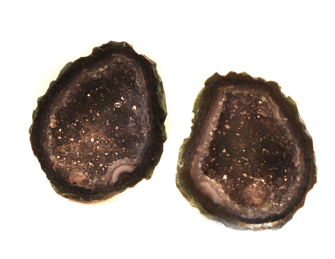 Baby Geode Earrings Tabasco Black Gray Druzy Oval Sterling Silver Polished Small Natural Drusy Quartz Halved Geodes Paired Stud Posts