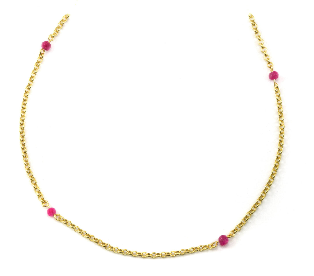 Pink Quartzite Necklace Spaced Chain Link Faceted 14k Gold Fill Necklace 18 19 Inches Small Dainty Simple Laser soldered in line chain