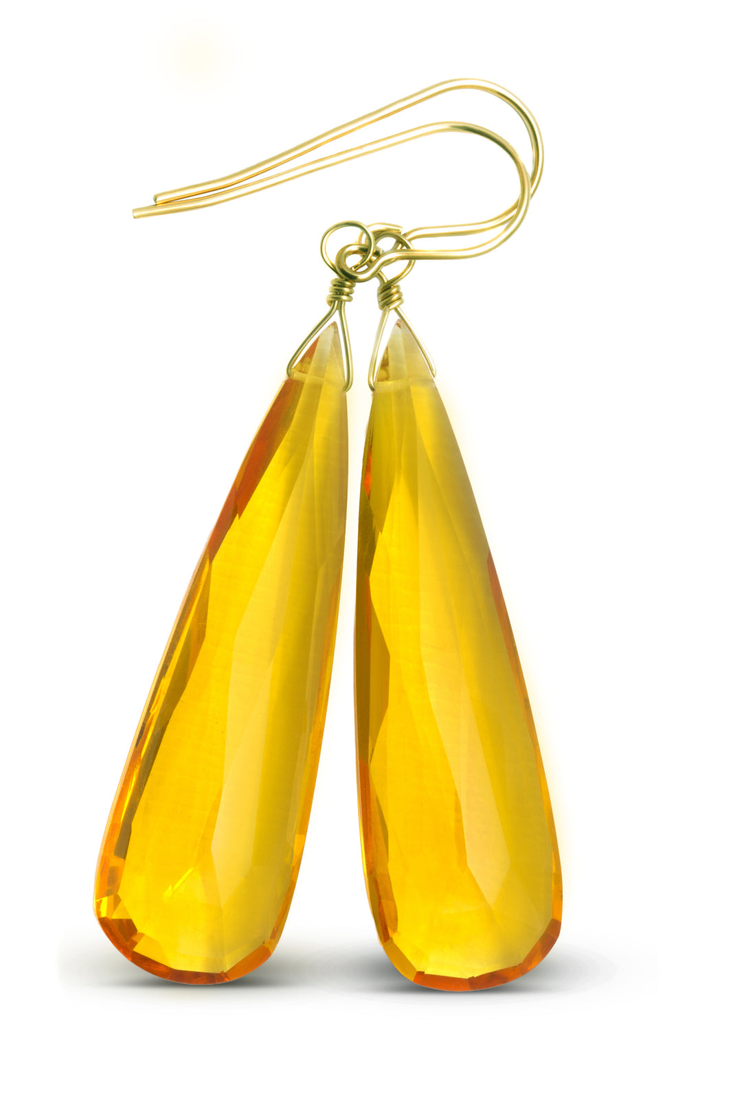 Yellow Citrine Earrings Large Faceted Simulate Briolette Long Drops 14k solid gold or filled or Sterling Silver Large Teardrops 2 Inch