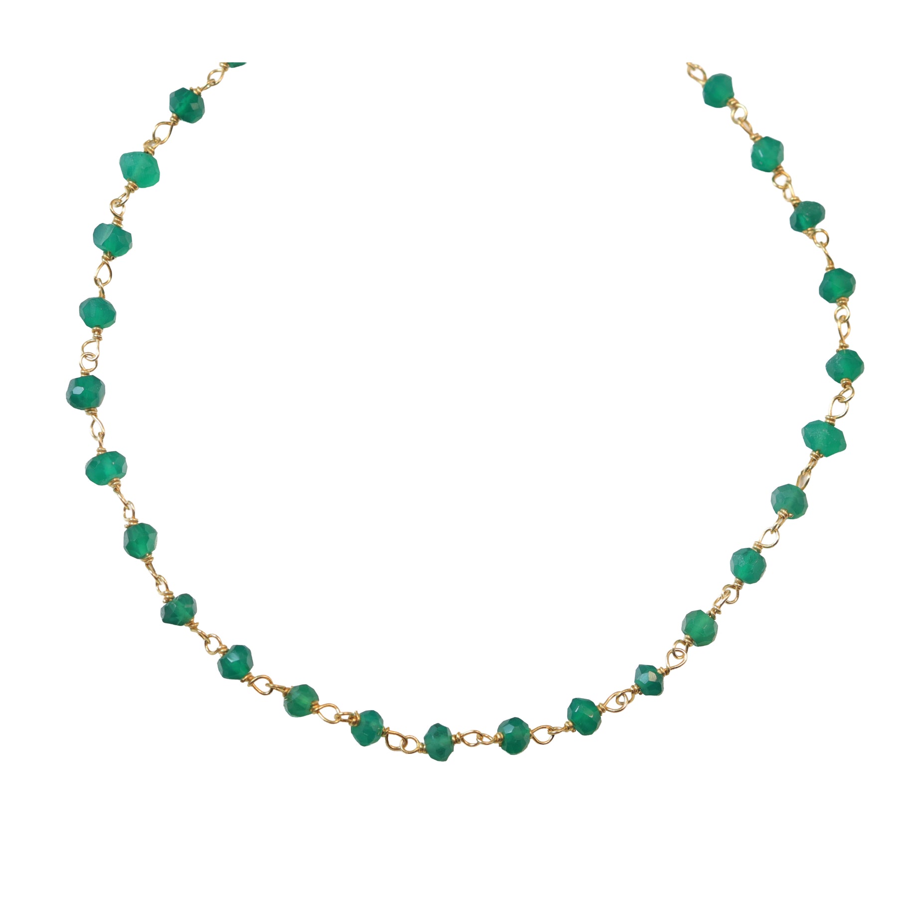 Green Onyx Necklace Faceted Spaced Link Beaded 14k Gold Fill or Sterling Silver Necklace 18 19 Inches Rich Emerald Green in Color 3mm or 5mm