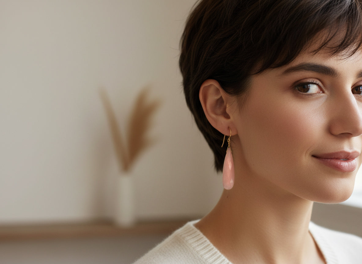 Pink Peruvian Opal Earrings Faceted Long Pear Teardrops 14k Solid Yellow Gold or Filled or Sterling Silver Simple Soft Pink Opals Earthy