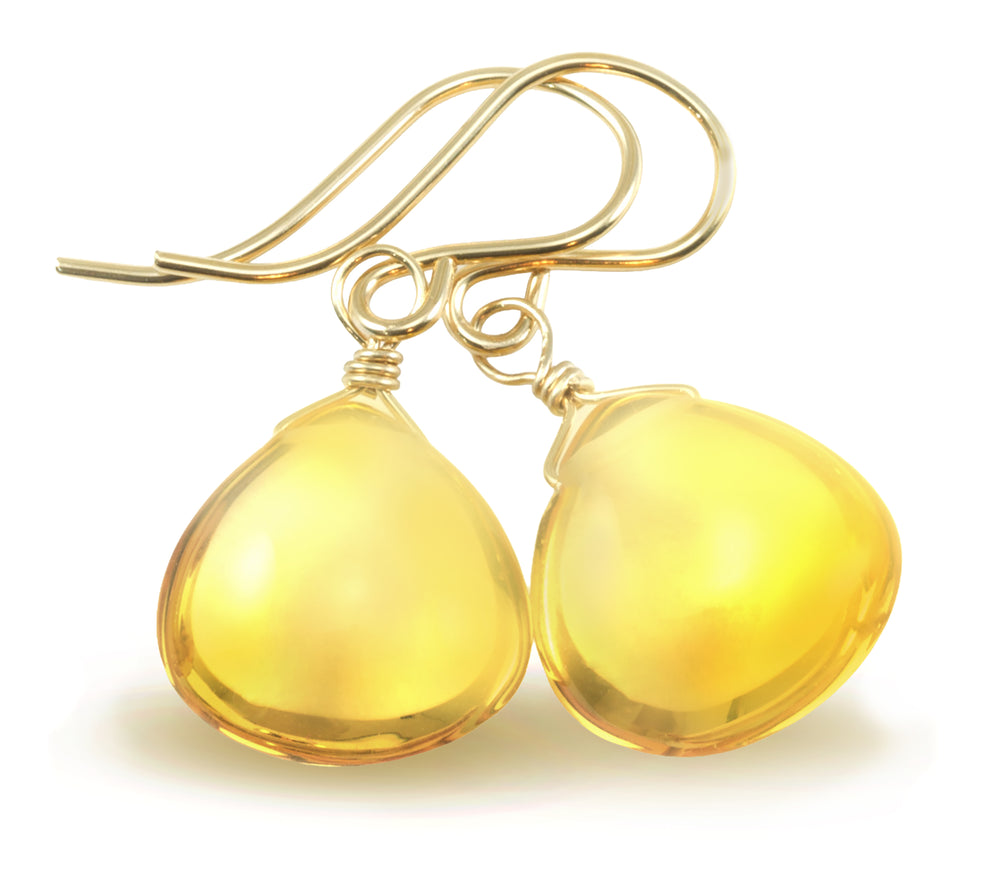 Yellow Citrine Earrings Smooth Sim Heart Drop 14k solid gold or filled or Sterling Silver Spyglass Designs Simple Teardrops Lightweight